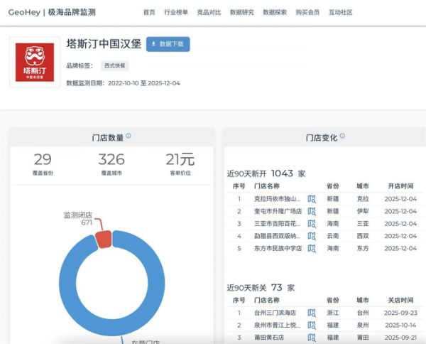 90天关了907家店?塔斯汀声明称数据严重失实,极海品牌监测更新数据
