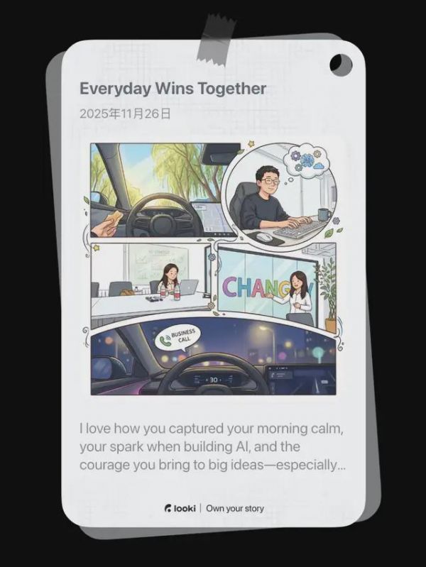 Looki 现在正通过每日洞察、九宫格漫画等功能来增加用户粘性。但这只是前菜,孙洋透露,在用户量达到一定规模后,他们将推出一种基于软件层面的网络效应玩法,只是 “目前不方便透露”。