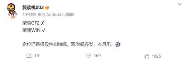荣耀GT2将改名荣耀WIN系列,预计本月发布
