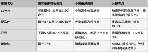 其他集团的业绩则勾勒出市场分化的现状。爱马仕凭借品牌力与客户忠诚度,第三季度营收增长9.6%,表现稳健。普拉达集团前三季度营收增长8%,其首席执行官安德烈·圭拉表示,中国市场销售趋势在第三季度得到了“显著改善”。