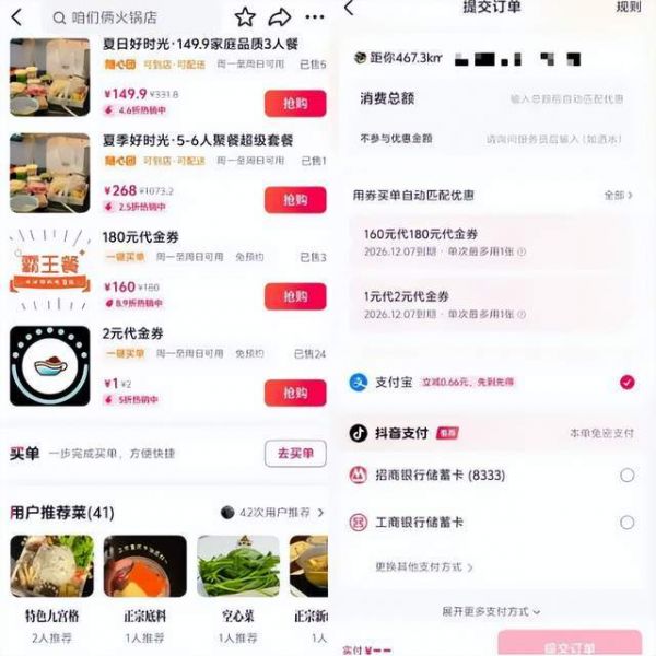 在上海的一家火锅店经 理 表示 , “‘ 抖音买单’上线后我们第一时间就接入了,年轻人本来就爱刷抖音看美食探店,到店后扫码就能付款,不用切换App,还能顺便领我们店里的优惠券,比如支付页面有设置1元代2元、160元代180元的代金券,下单率都高了不少。”