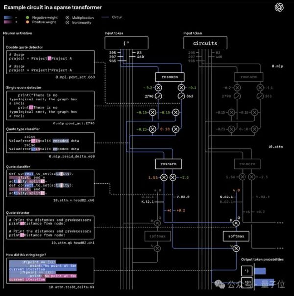 比如处理Python引号闭合任务时,仅需2个MLP神经元和1个注意力头就能构成核心电路,包含专门的引号检测器、类型分类器等功能模块,就像电路图里的电阻、电容,各自管各自的事。