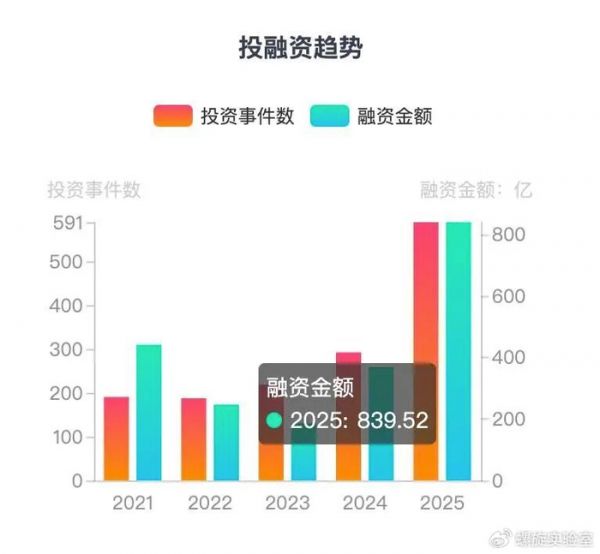 风口之上,资本盛宴也随之开启。IT桔子数据显示,2025年国内机器人产业链相关投融资事件达557起,总融资额超过839亿元。