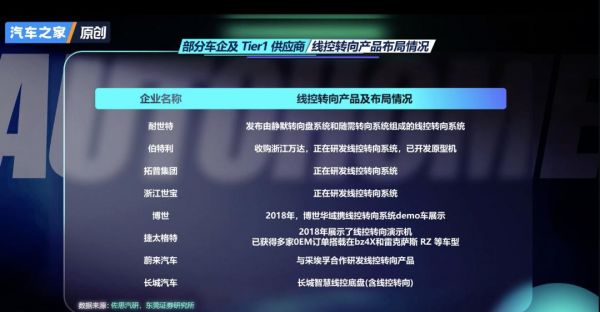 其次,国内产业链有了突破:耐世特的线控转向产品已获得多个定点项目,伯特利、拓普集团、浙江世宝等企业也均在线控转向领域展开布局。虽然博世、采埃孚、捷太格特等海外龙头企业具有先发优势,但线控转向整体尚处起步阶段,国产替代的窗口有望打开。