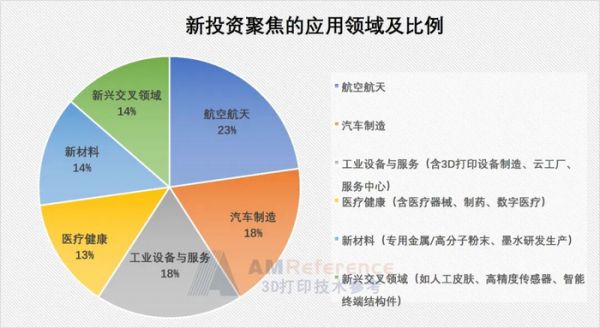 通过对26起公布的建设项目分类,笔者发现,航空航天领域的建设数量最高,仍然是3D打印技术应用的主战场;汽车制造领域因为金石的投资达到了30亿,远超其他项目,因此排名第二;工业设备与服务的占比高达18%,表现出我国当前在电子3C等民用市场开始规模化应用的趋势;而医疗健康占比也达到了13%,这与十五五的规划布局相一致。