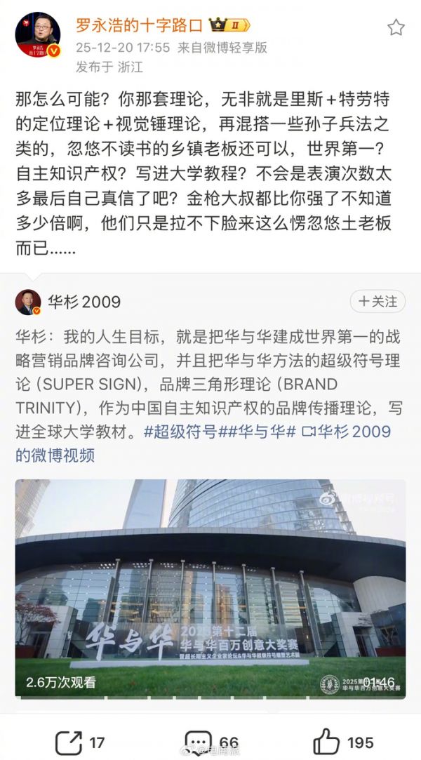 罗永浩驳华杉世界第一论,称忽悠乡镇老板