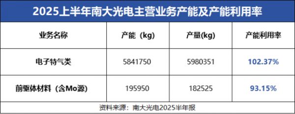 2025上半年,公司电子特气、前驱体材料产能利用率分别为102.37%、93.15%,供给较为紧俏。