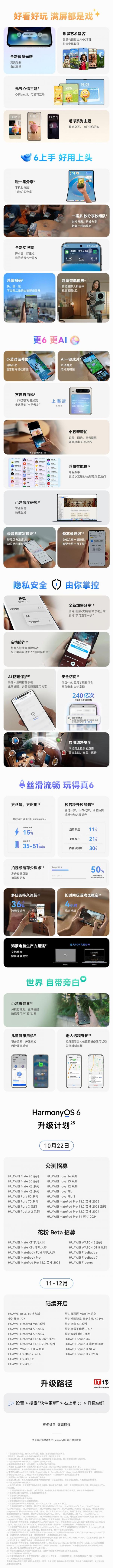 参考IT之家此前报道,华为鸿蒙 HarmonyOS 6 系统已于今年 10 月 22 日发布,带来了“智慧光感”设计,实况窗、小艺、碰一碰等全面升级,新系统的升级计划也于 11 月 25 日公布,多款机型已开启正式版升级。最新数据显示,华为鸿蒙装机量已突破 3000 万台。