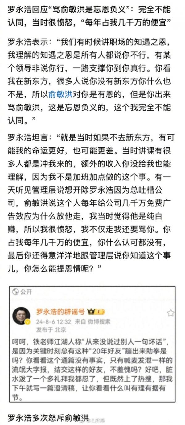罗永浩再谈忘恩负义,还顺便替俞敏洪辟谣,他是辞职不是被开除