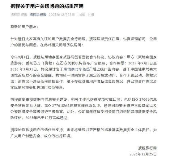 别慌!携程正面回应柬埔寨合作:未曾启动,绝不泄露隐私