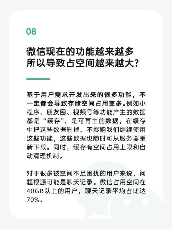 同时,微信表示这些优化调整使用户清理储存空间更方便: