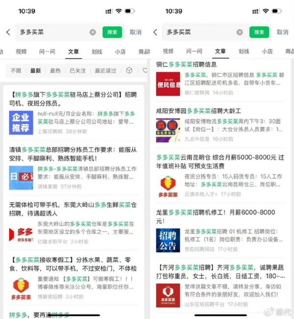为此,多多买菜采取了一系列应对措施:在广东多个城市将截单时间从23点提前至22点,以缓解末端配送压力;招商团队主动对接原美团供应商,提供合作支持;同时在揭阳、湛江、东莞等地加大招聘力度,分拣、司机等岗位月薪从6000-7000元提升至8000-9000元,部分紧急岗位月薪超过万元。