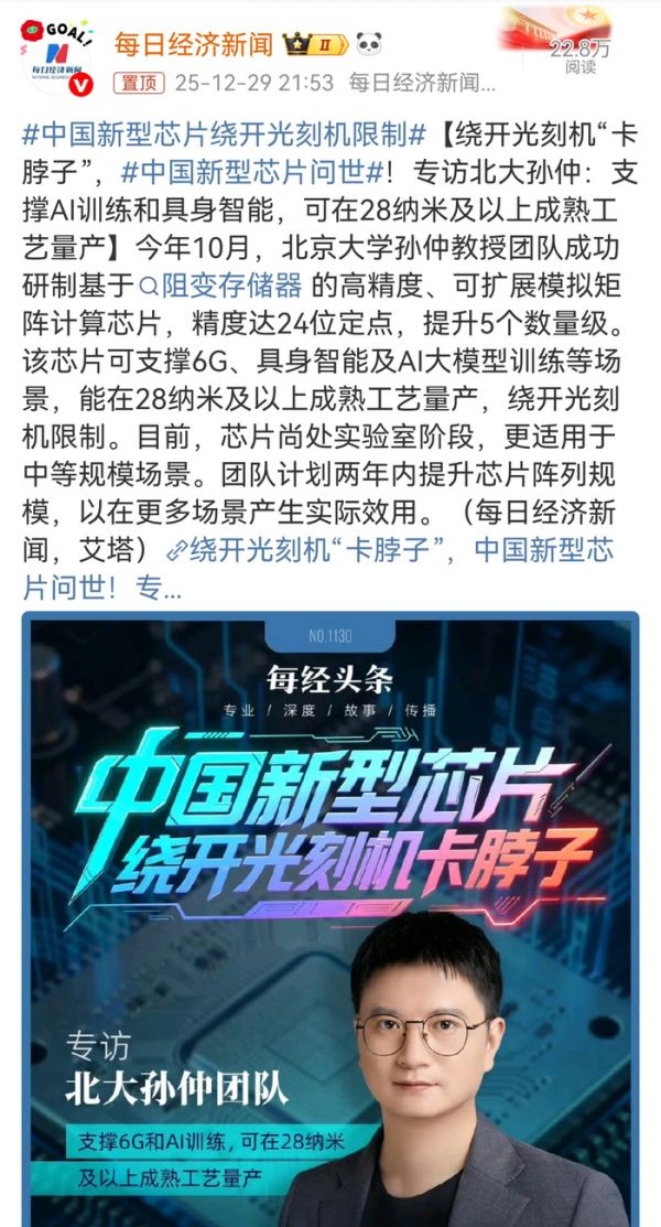 #中国新型芯片绕开光刻机限制# 中国新型芯片问世了!