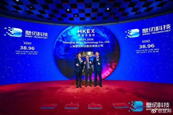 北京时间2026年1月2日,启明创投投资企业、国产GPU领军企业壁仞科技成功登陆港交所,成为2026年港股首家上市企业。壁仞科技(06082.HK)发行价为19.6港元/股,开盘价35.7港元/股,市值855.42亿港元。此次成功登陆港交所,壁仞科技不仅为“港股GPU第一股”,也是港股18C章规则落地以来发行规模最大的新股。