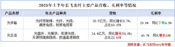与之相对,长飞光纤高度集中于光传输和光互连这两类业务,2025年上半年分别占比60.25%和22.61%。