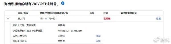 考虑到之前意大利推出的5万欧元保证金的政策,相当一部分卖家决定借这个契机关闭意大利仓储,退出意大利站点。奇怪的是相当一部分卖家虽然早就完成意大利VAT注册了,但是前往后台准备注销时发现,意大利税号已被拒绝,也就是失效了。