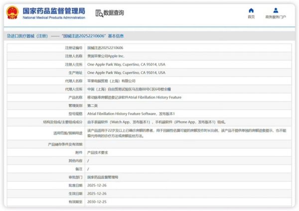图源:药监局这张看似普通的电子证书,标志着可穿戴设备在中国市场,正式从运动手表,跨入“医疗辅助工具”的门槛。