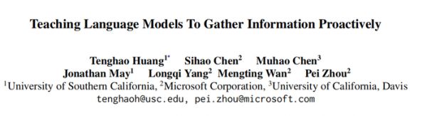 图丨项目主要成员,从左至右依次是:杨珑颀、黄腾昊、周沛和陈斯昊(来源:该团队)相关论文以《教会语言模型主动收集信息》(Teaching Language Models To Gather Information Proactively)为题,已经被 EMNLP-Findings 2025 接收 [1]。南加州大学博士生黄腾昊(目前在微软实习)是第一作者,微软公司资深研究科学家周沛和陈斯昊担任共同通讯作者。