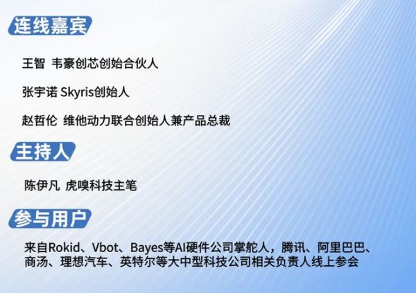 本次活动汇聚了来自Rokid、Vbot、Bayes等早期或成长期AI硬件公司的掌舵人,以及腾讯、阿里巴巴、商汤、理想汽车、英特尔等大中型科技公司的相关负责人,整场活动中,线上观众也参与了热烈的讨论,提出了关于AI硬件发展路径与商业模式的核心问题。
