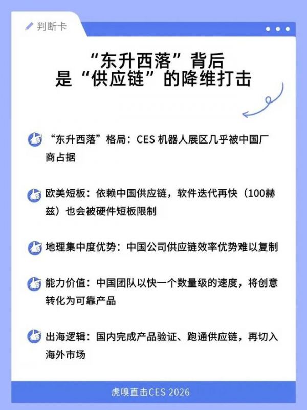 北京时间1月8日一大早,虎嗅的镜头对准了2026 CES现场。这场跨国直播,除了探访CES现场的亮点展台,也特别邀请了几位身处一线的投资人与创业者,一同探讨今年CES的一些明显判断与趋势。