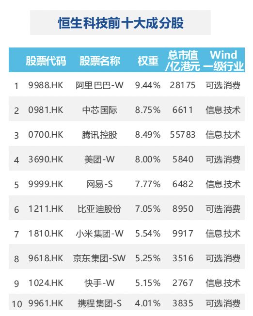 恒生科技ETF易方达(513010)追踪的恒生科技指数,其前十大成分基本都是咱们国内的科技创新领军企业,而且龙头权重集中度挺高的,前十大占比高达69%。权重集中度高其实也非常契合科技产业龙头效应的客观规律。