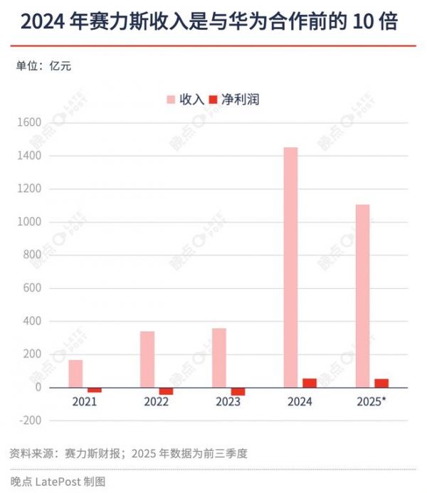 而从 2022 年以来,赛力斯累计付给华为的采购费用超过 750 亿元 —— 但这也比赛力斯合作前亏损近百亿元、濒临倒闭的处境好太多。双方的合作始于 2021 年,那时双方都没有太多选择。新能源转型投入巨大却持续亏损的赛力斯急需技术与品牌 “翻身”,华为则在与上汽、广汽合作受阻后,寻找更顺畅的合作方。