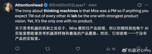 至于其他人集体出走的原因,《连线》所联系的知情人士表示,这是 Thinking Machines Lab 内部长期讨论的结果。公司团队在产品定位、技术路线与未来发展方向上存在分歧,这才是核心原因。目前他们需要理清的问题包括:要开发什么产品,是否应专注于研究或部署,如何证明筹集资金的规模合理性以及领导层信任与治理。