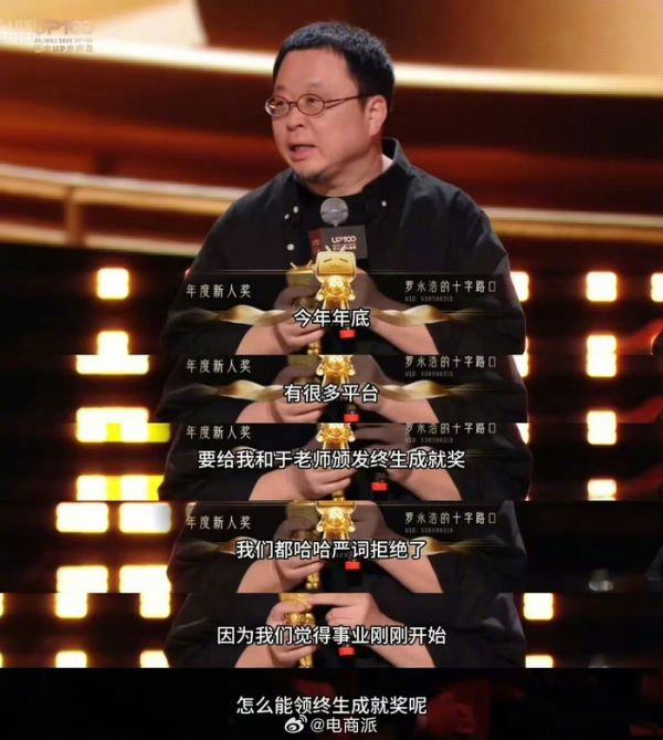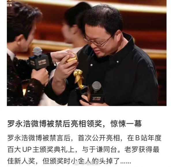 罗永浩现身B站颁奖晚会,创业半生,归来仍领新人奖。