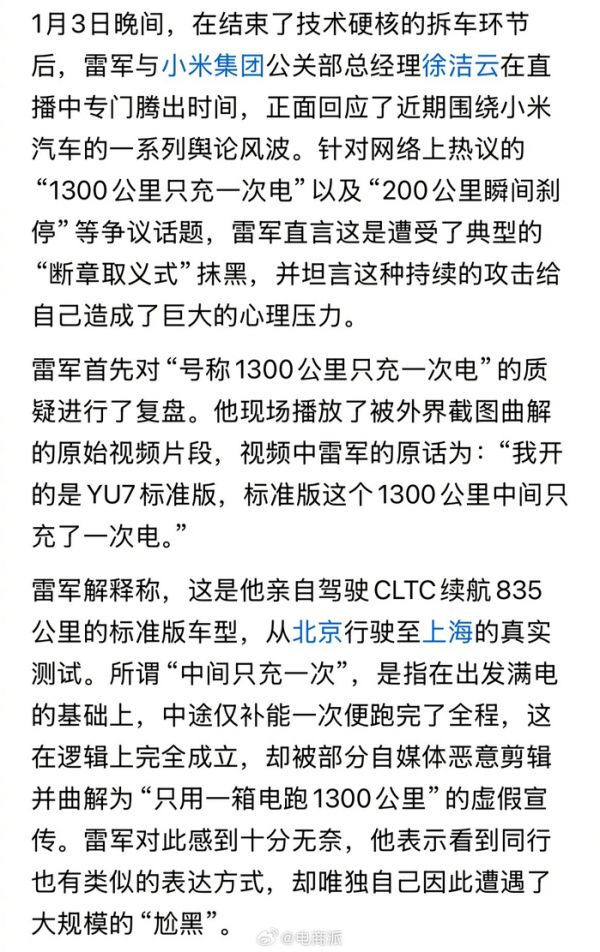 雷军真被抠字眼尬黑出心理阴影了,庆祝小米新SU7 Max破耐力挑战记录,着重强调含充电时间。