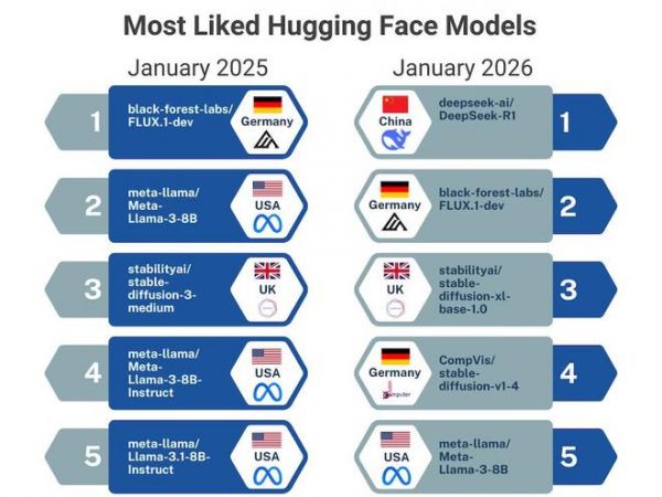 从百度、字节跳动到月之暗面、智谱AI,各大机构在过去一年中陆续加入Hugging Face并发布高质量模型,在社区下载、点赞与引用榜单上频频登顶。