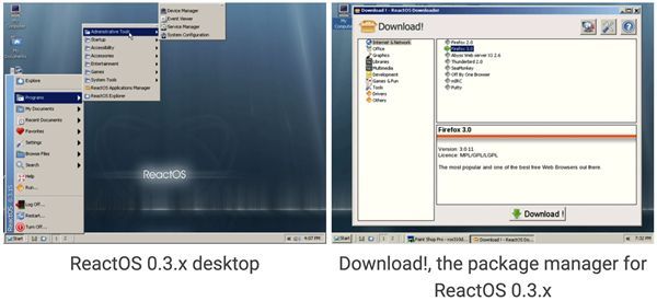 在2003年至2016年的0.2.x和0.3.x版本时期,ReactOS实现了基本桌面、网络支持和包管理器等功能。