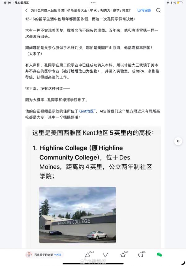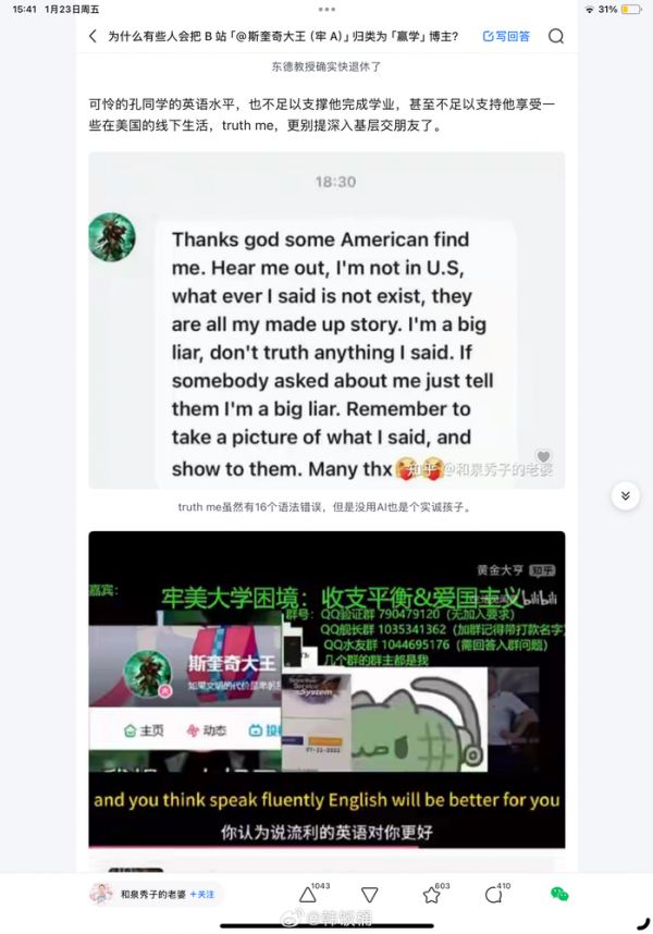 啊?这是真的假的啊?有知乎用户曝光牢A的真实身份和经历,说他是2012年出国读美国社区学校,一直没升上大三,还说他的故事都是从美国贴吧reddit里抄来的?