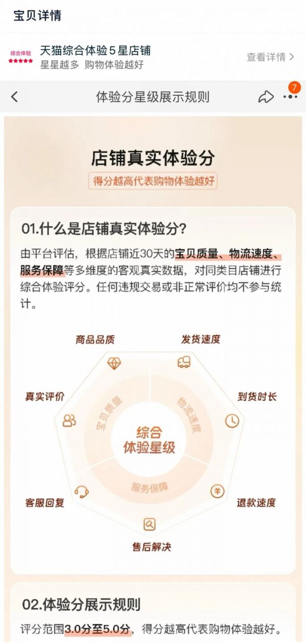 敏锐捕捉到这一市场变化和行业转折,淘宝在去年率先推出“扶优”策略:通过商家分层与资源倾斜,对服务好、商品优的商家加大扶持力度,引导竞争走向“优质优价”的良性循环。为了让店铺评价更真实可靠,淘宝还上线了“真实体验分”,直接取代使用了20年的卖家服务评价系统,成为用户了解商品、商家的最新标准。