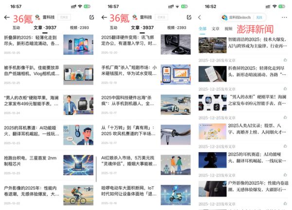 截至目前,“雷科技·年度”专题已输出29+内容,雷科技/电车通编辑团队一共输出超过10万字,对2025年科技产业进行了全面的盘点,在雷科技自有全渠道、36kr等平台一共收获了600万+次阅读/播放。