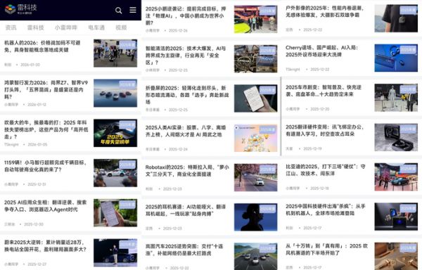 雷科技网站专题推荐岁末年尾,我们整理了2025年度内容,供您快速回顾AI科技产业(智能手机/AI硬件/智能家电/互联网/智能汽车)这一年。