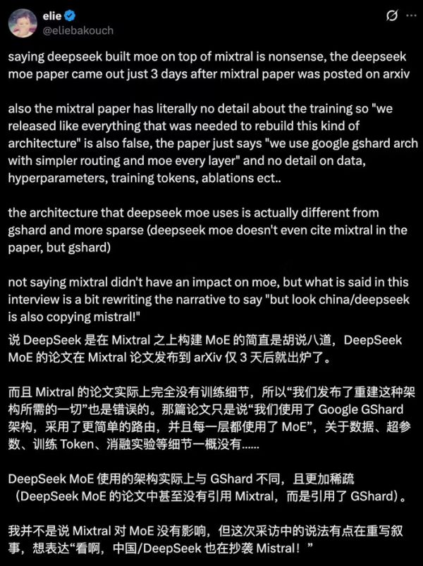 【岁月史书启动!Mistral CEO称DeepSeek-V3基于其AI架构打造】