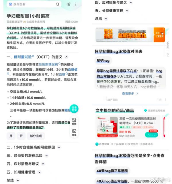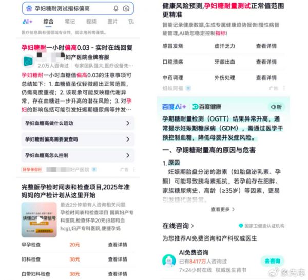 其中百度搜索,我输入的是“孕妇糖耐测试指标偏高”,这是百度返回的搜索结果。