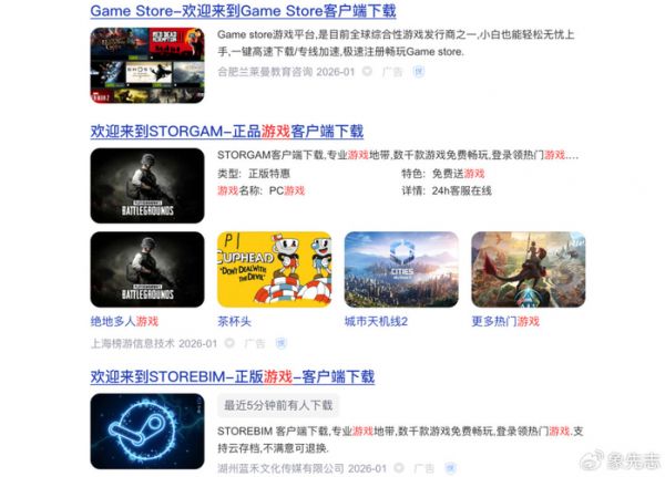 比如搜个 Steam,前几个都是广告,用户稍不注意或者不具有分辨能力,就很容易点到盗版网站。如果用户手里信息是充分的,能够分辨广告,他们就没有任何理由给盗版网站贡献点击量。