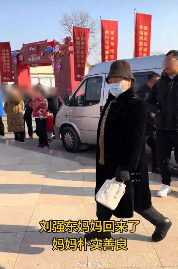 刘强东母亲回村,走路很霸气,穿着去年儿媳送的大衣,坐面包车很低调,要帮刘强东给乡亲发年货。