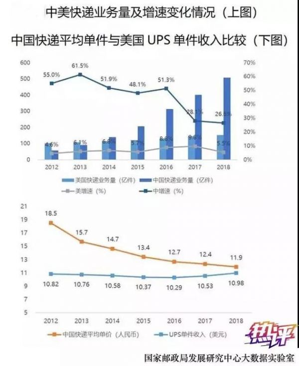当前中美在快递物流领域分别占世界第1和第2。美国快递业已经走过150年的发展历程,中国快递业则凭借近10年的超高速增长获得全球瞩目——在过去10年间,中国快递的规模增长了27倍,与此同时价格下降了一半。