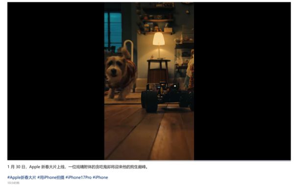有趣的是,相信大家都知道拍宠物戏的难度有多大。好动的狗狗不会配合镜头,i苹果团队大概率要提前反复训练引导狗狗,背后必然耗了不少心力。