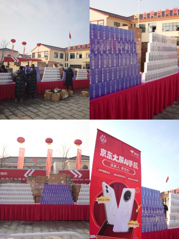 上万件年货已到位!刘强东为乡亲父老发年货,大屏AI手机垒成墙