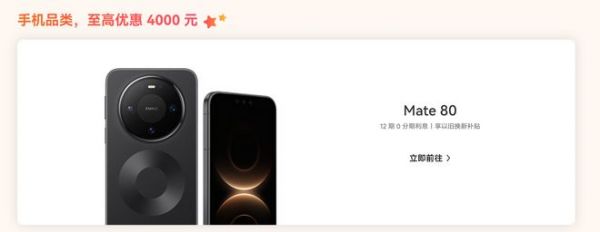 其中,Pura 80系列指定机型最高优惠1500元,Mate 70系列指定机型最高优惠1800元,Mate X6系列最高优惠2000元,参与以旧换新最高优惠1000元,还可享最高12期分期免息。