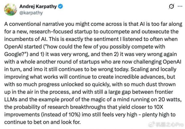 但 Andrej Karpathy 毫不留情地指出:这种说法,在 OpenAI 成立时就是错的;后来,又一次被证明是错的。