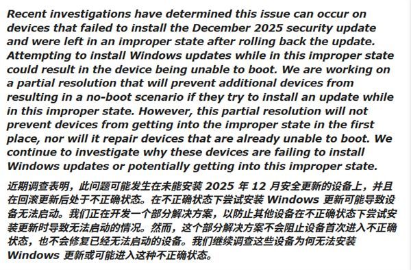 经过初步调查,微软发现这并非单一补丁的过错,而是一场连锁反应,受影响的设备大多在2025年12月尝试安装安全更新时失败并执行了回滚。