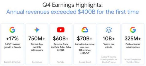 谷歌(GOOGL.US)AI变现稍缓“烧钱”忧虑:Gemini驱动Q4云收入超预期,今年资本支出指引翻倍达1800亿美元