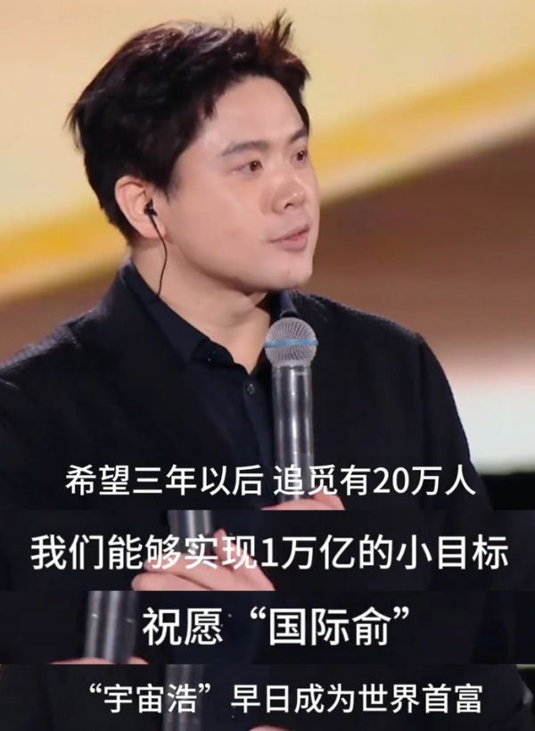 接下来该划重点了。除了学历上凡尔赛以外,俞浩还放出豪言,说三年后要实现 1 万亿小目标,让追觅的员工们从 2 万增至 20 万,并且自己要当上世界首富!