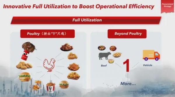 在供应链端,“全物利用” 的经营理念开始在内部推行。依托肯德基、必胜客等多品牌的庞大需求,百胜中国能够对一只鸡进行 “全局规划”:将整鸡的不同部位与规格,结合品牌的需求以及研发,匹配到最合适的产品线中。鸡腿、鸡翅用于肯德基的经典产品;其他部位则通过研发和品牌协同被转化为具有吸引力的新品,鸡胸肉被开发为热门的藤椒鸡排堡、疯狂星期四的热辣香骨鸡源于翅根的创新分割,必胜客的川香傲椒脆翅尖则是鸡翅的完全利用,为消费者提供了新的口味。
