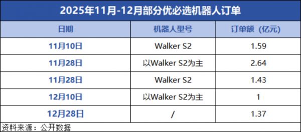 宇树科技2025年人形机器人出货量超5500套。智元机器人2025年全球出货量预计超5200台。优必选2025年全年订单总额接近14亿元。