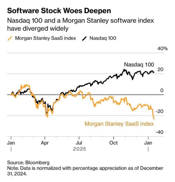 这场危机已经持续数月。等到市场做出反应时,IGV 软件指数已较 9 月下旬的峰值下跌了约 30%。上周发生变化的不是方向,而是速度。